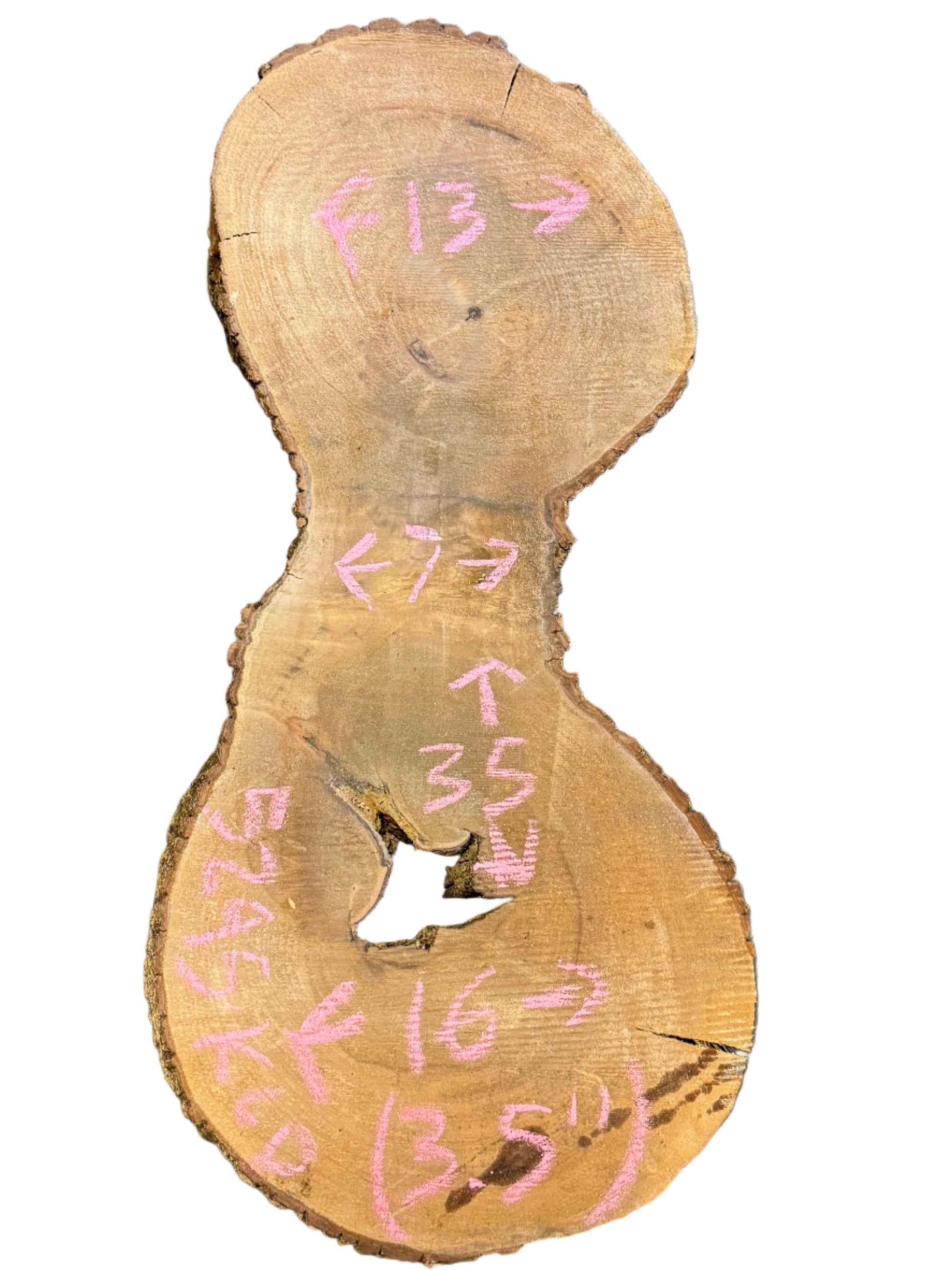 Kiln dried Bay Laurel cross-cut cookie live edge wood slab measuring 3.5X13-7-16X35.