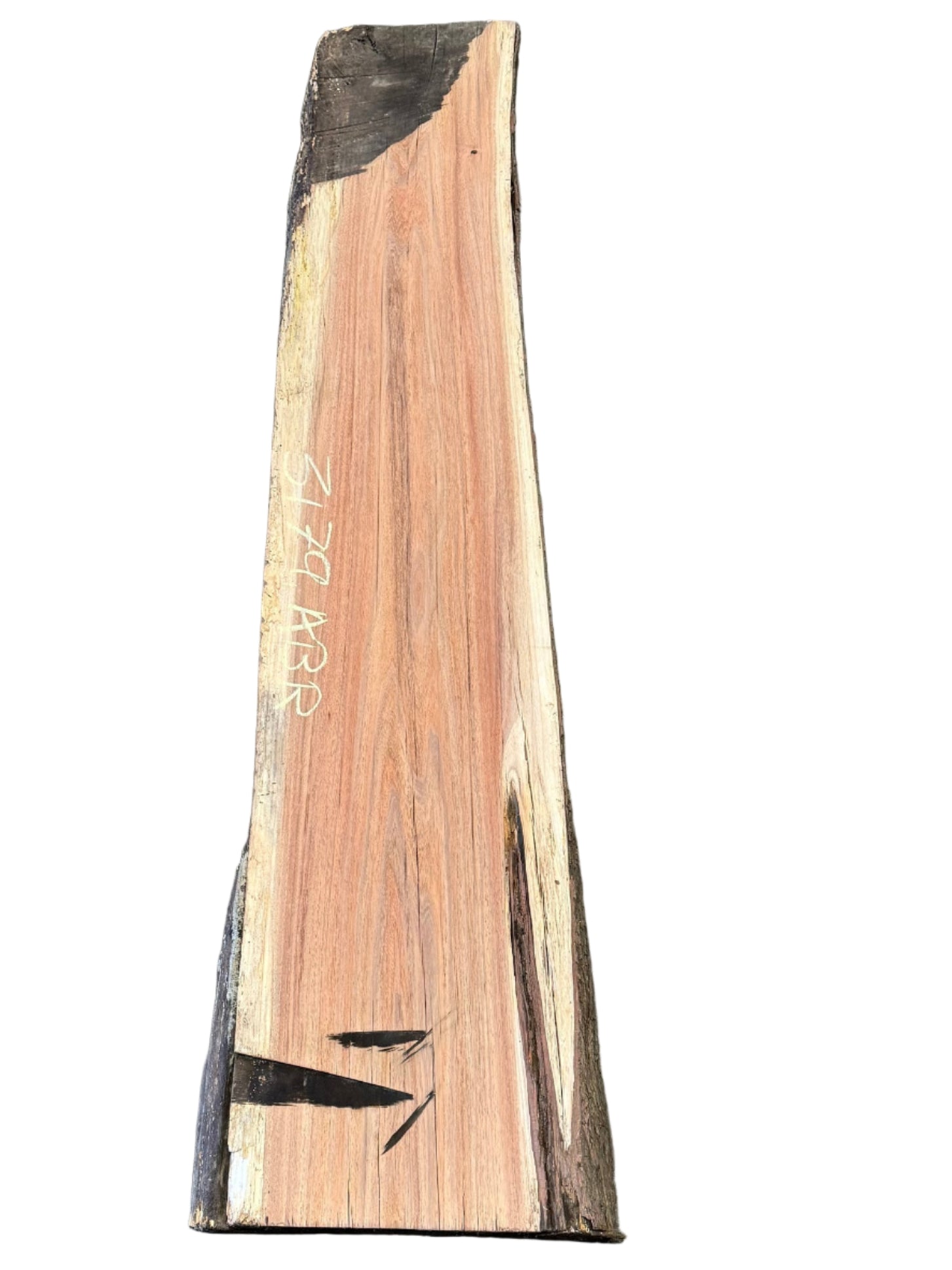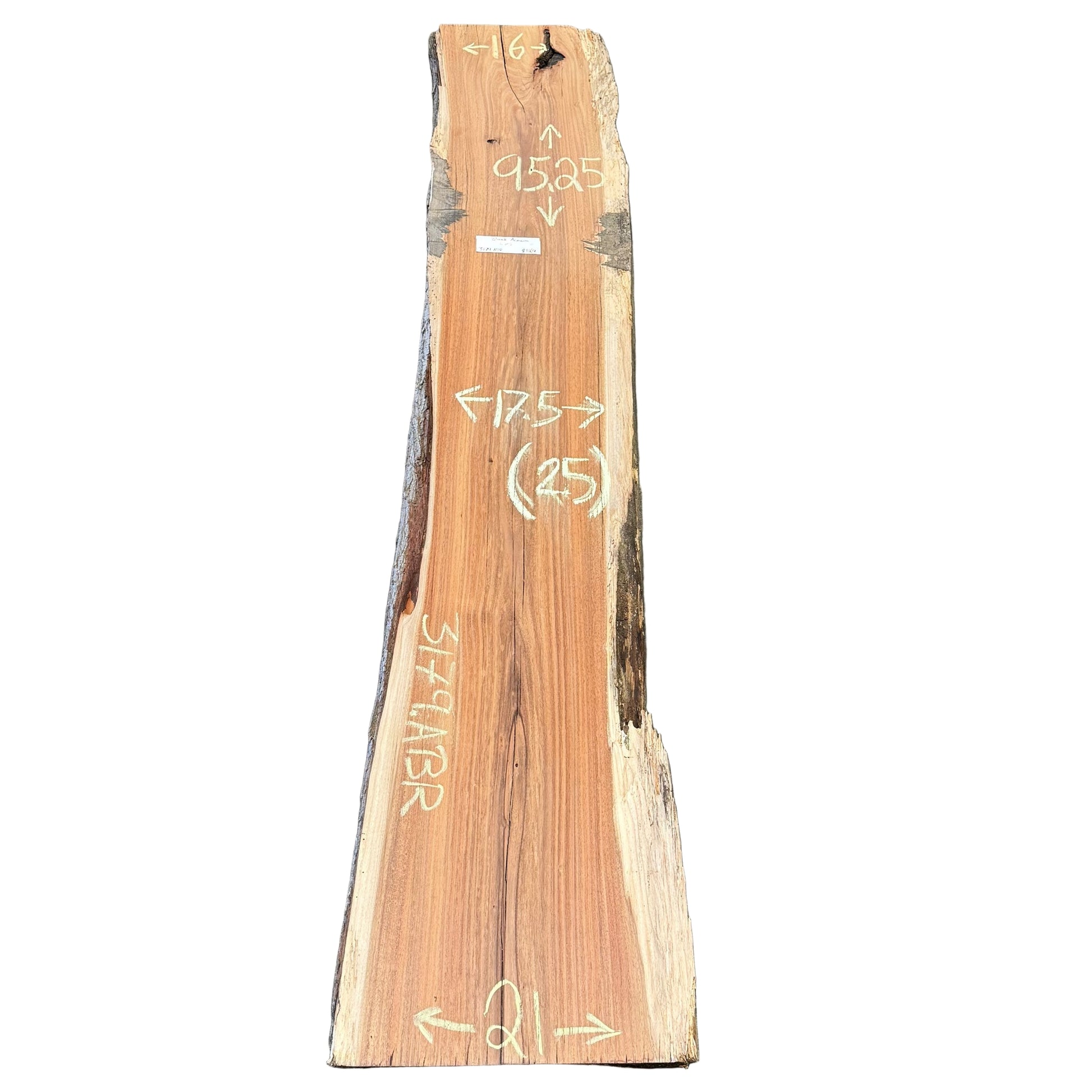 Kiln dried and surfaced Black Acacia live edge wood slab measuring 2.5X16-17.5-21X95.25.
