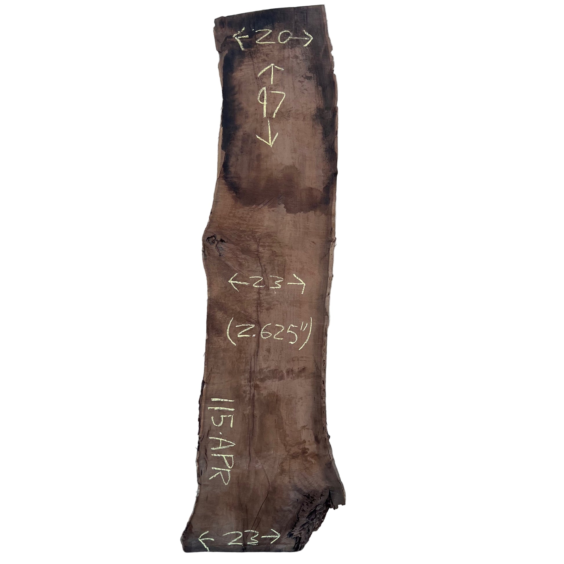 Kiln dried Claro Walnut live edge wood slab measuring 2.625X20-23-23X97.