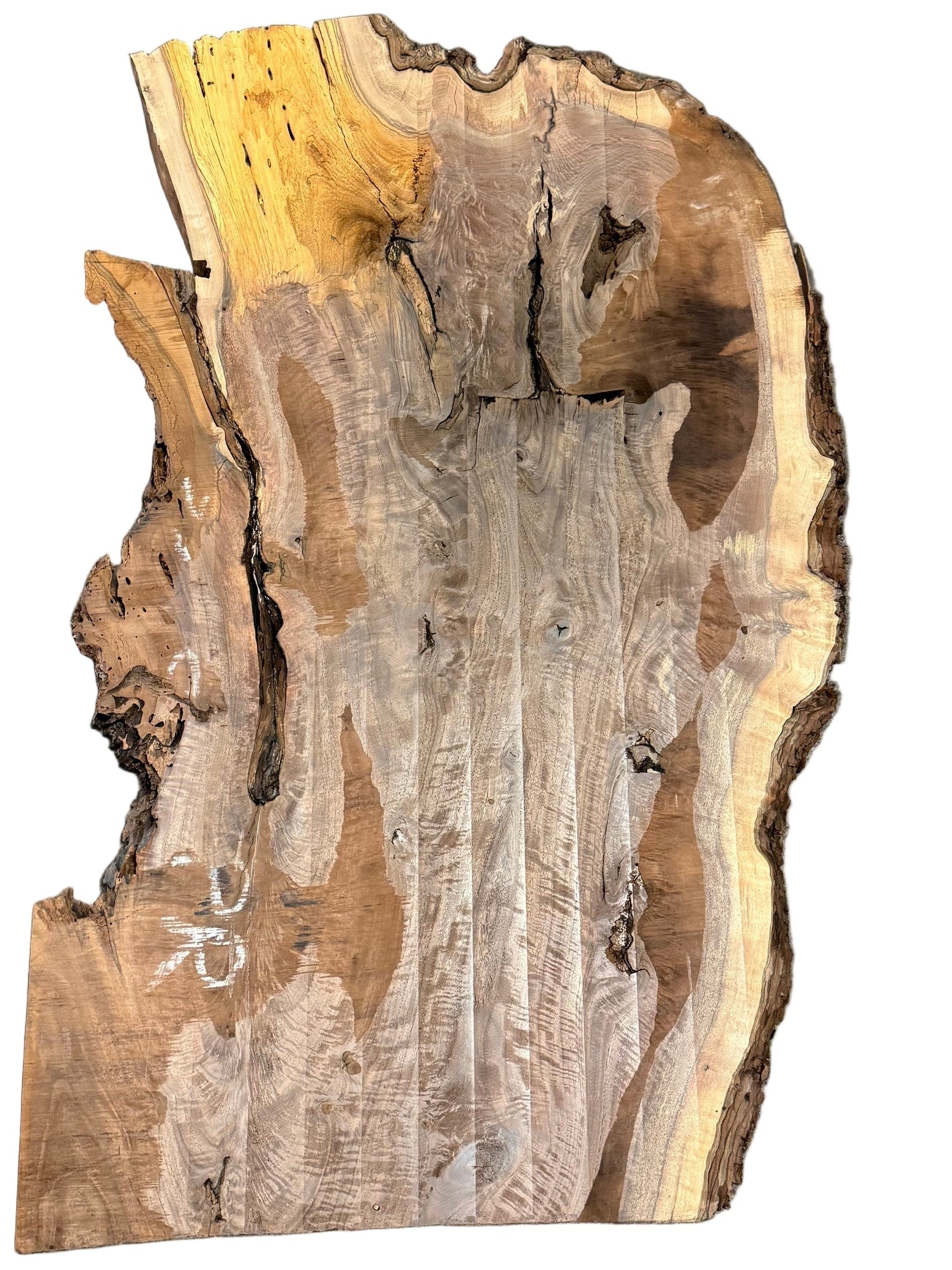 Kiln dried and surfaced Claro Walnut live edge wood slab measuring 2.125X22-26-22.5X46.25.