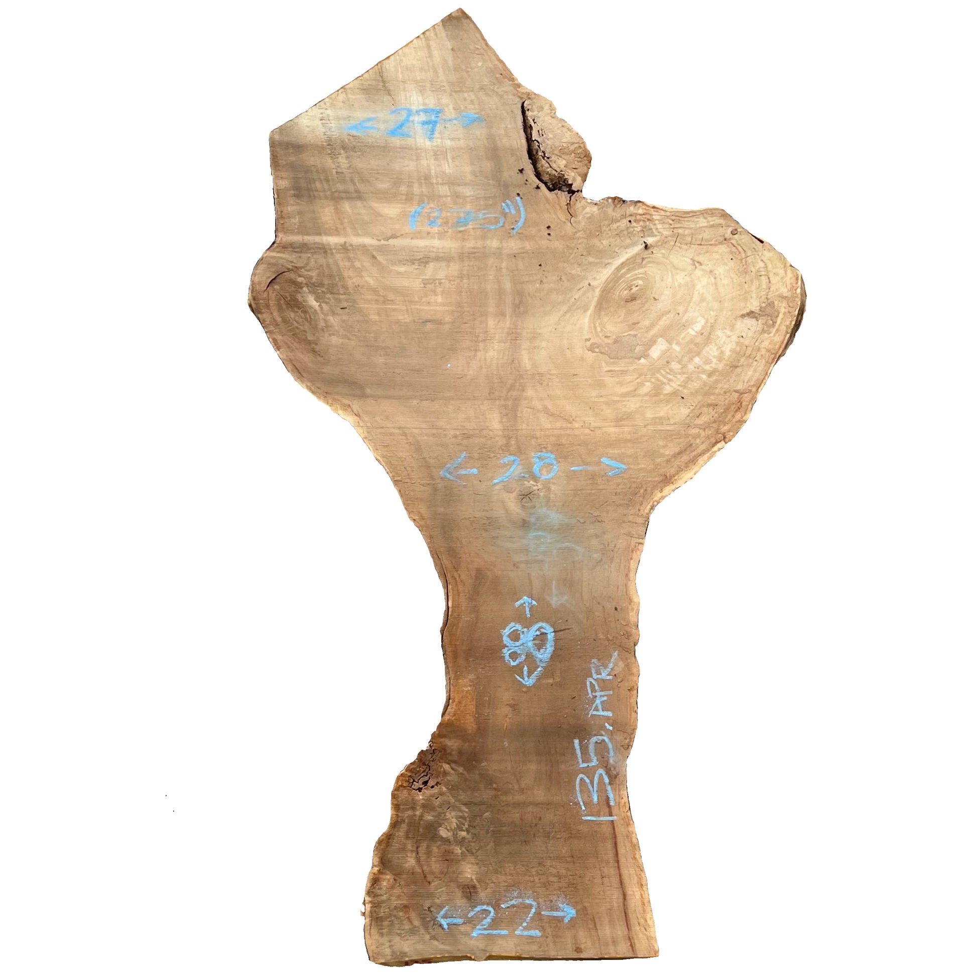 Air dried Cottonwood live edge wood slab measuring 2.75X27-28-22X80.