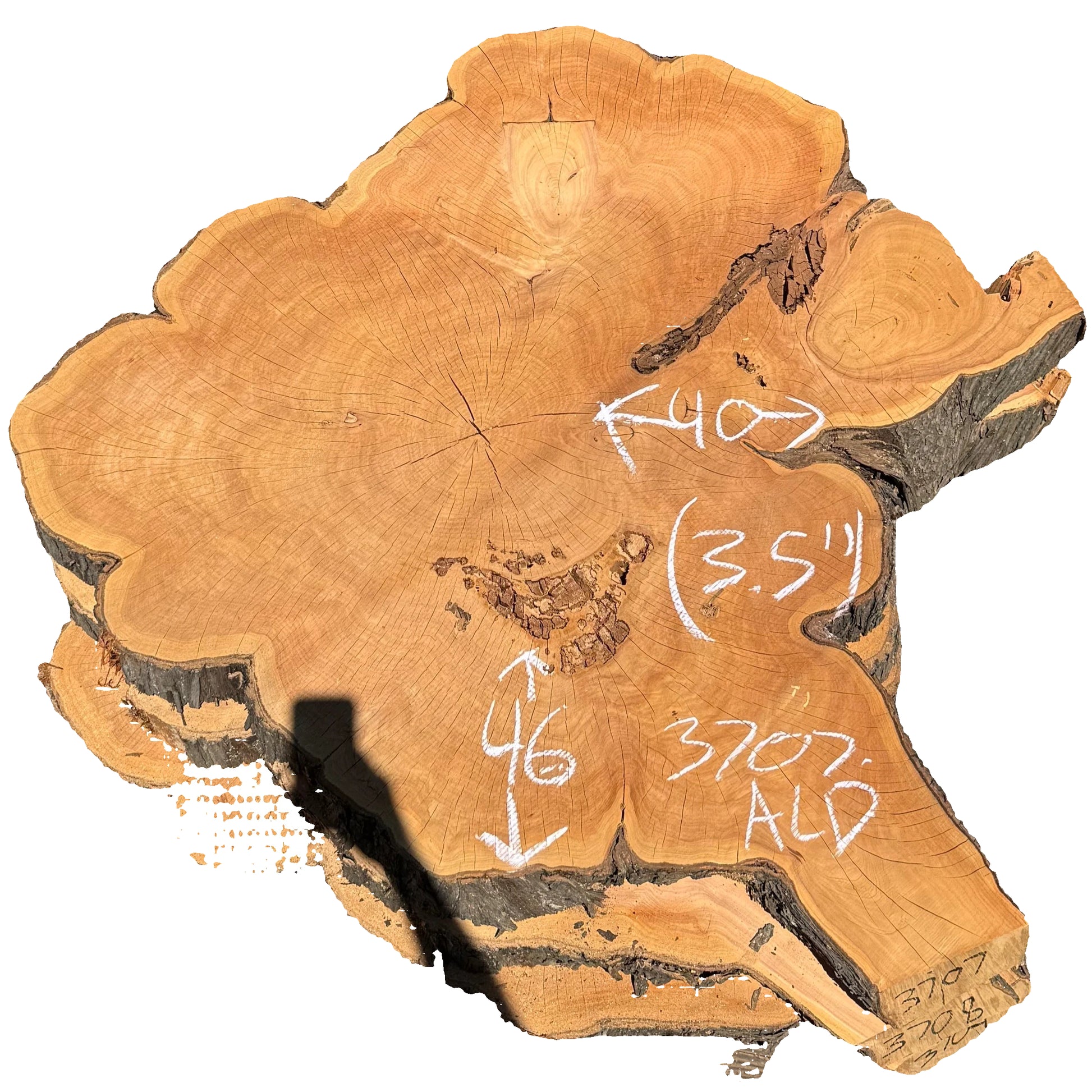 Air drying Monterey Cypress cross-cut cookie measuring 3.5X40X46.