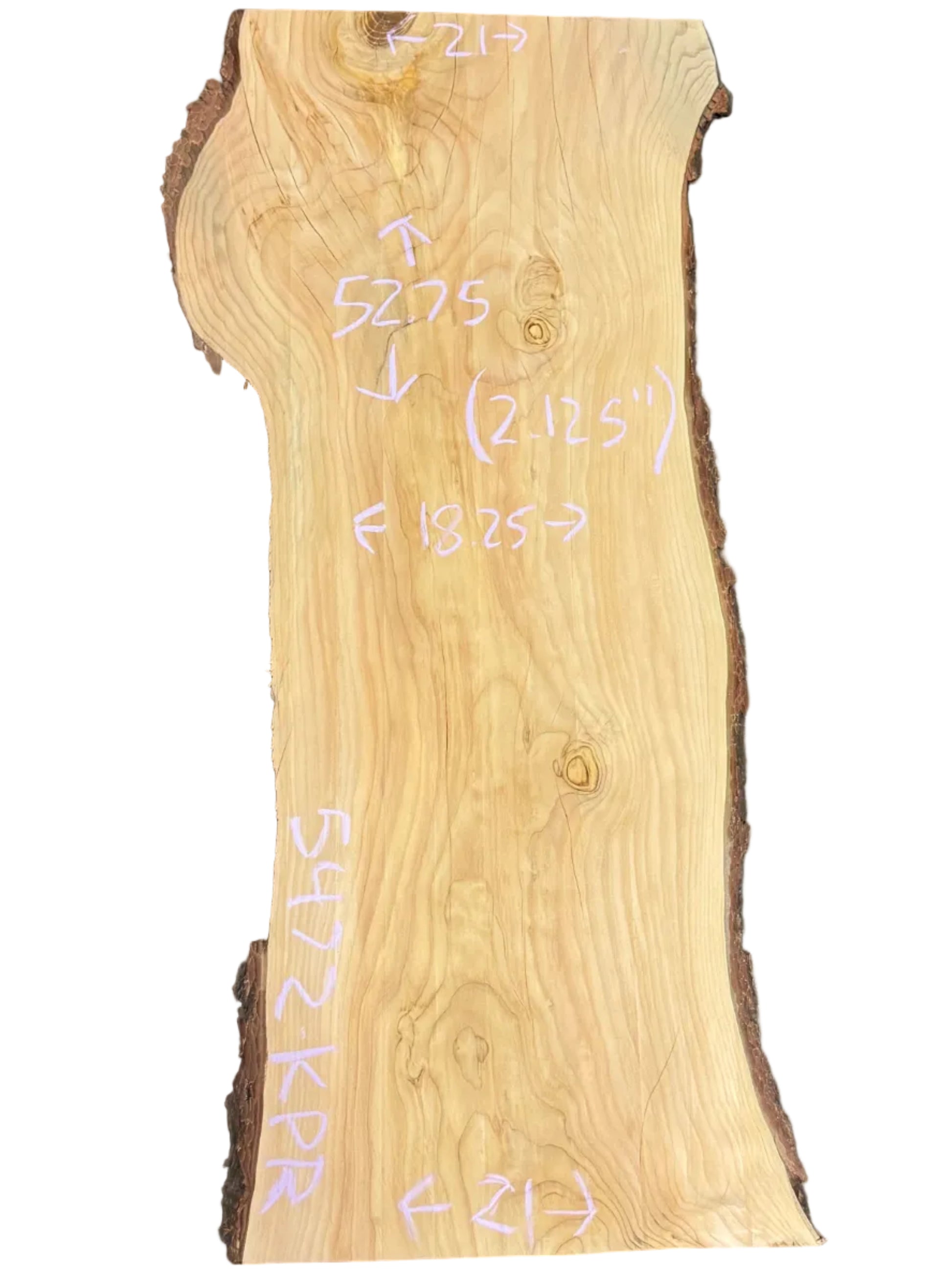 Kiln Dried Deodar Cedar hallway table measuring 10X48X52" (minimum 10" wide) with a single live edge and one straight edge to sit against the wall. The live edge corners will be softened to reduce the sharp edge. Table will be finished in clear Rubio Monocoat, the same product that was used on the dining table. Legs are 1X3 rectangular tubing, powder coated black.