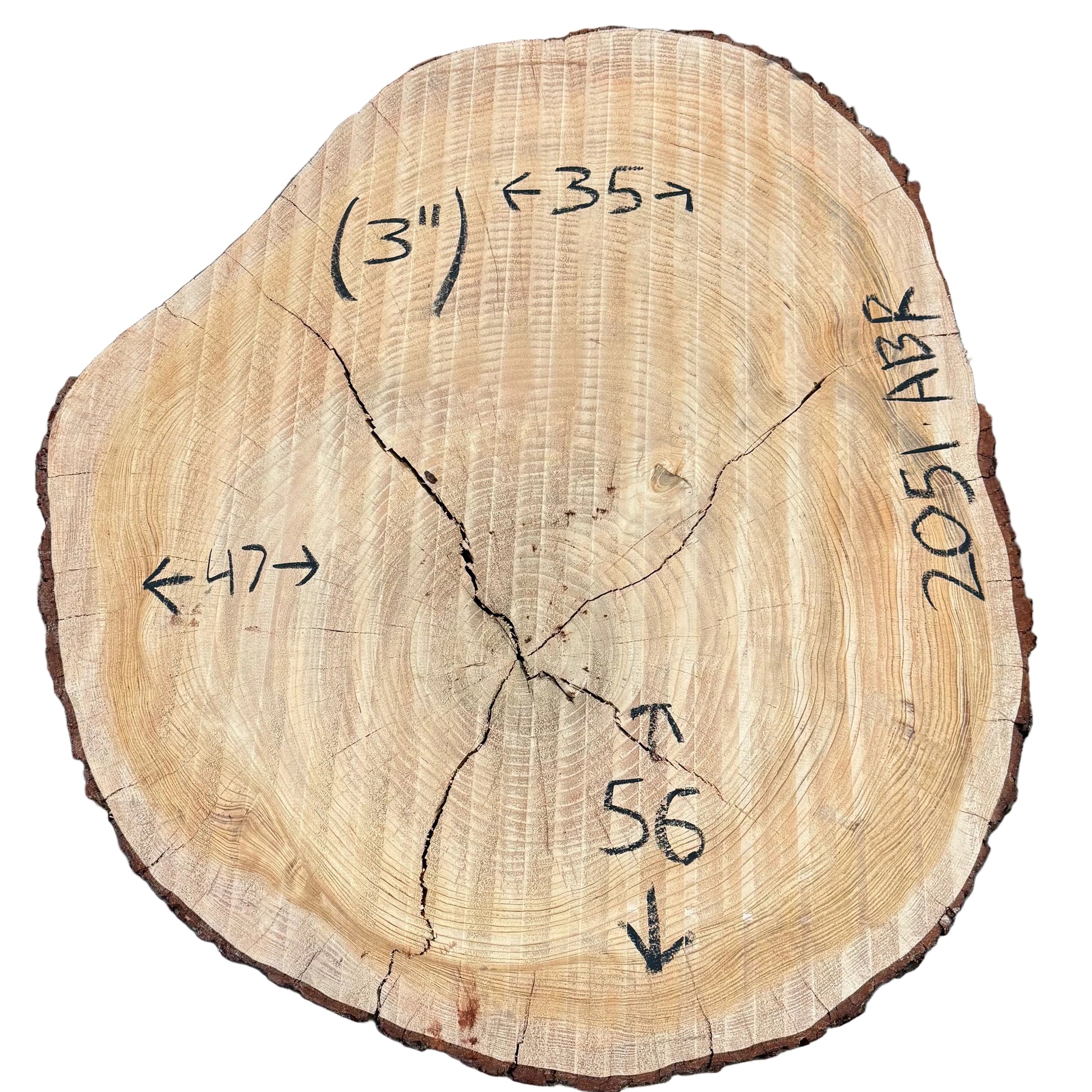 Air dried and surfaced Deodar Cedar cross-cut cookie measuring 3X35-47X56.