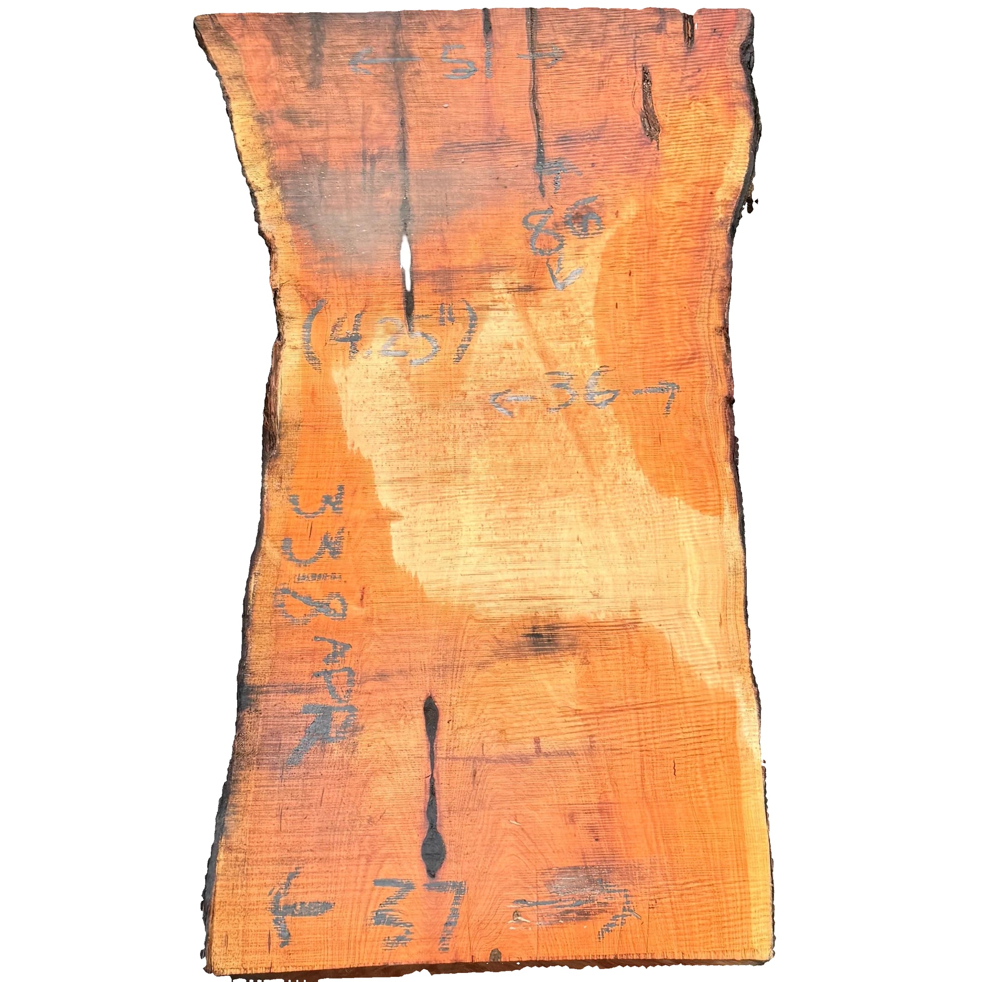 Kiln dried Monterey Cypress live edge wood slab measuring 4.25X51-36-37X86.