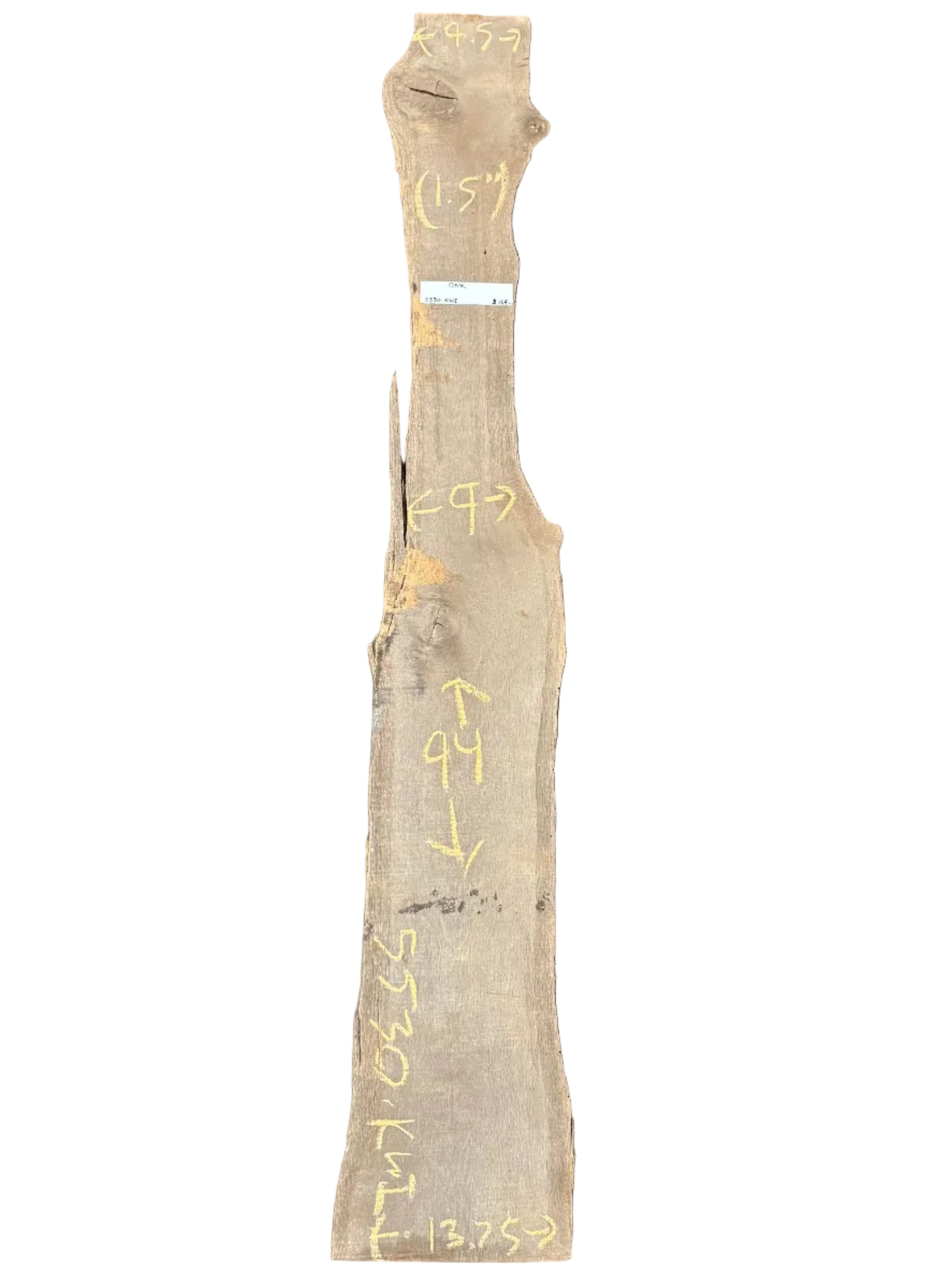 Kiln dried Oak live edge wood slab measuring 2.25X15.5-13X47.