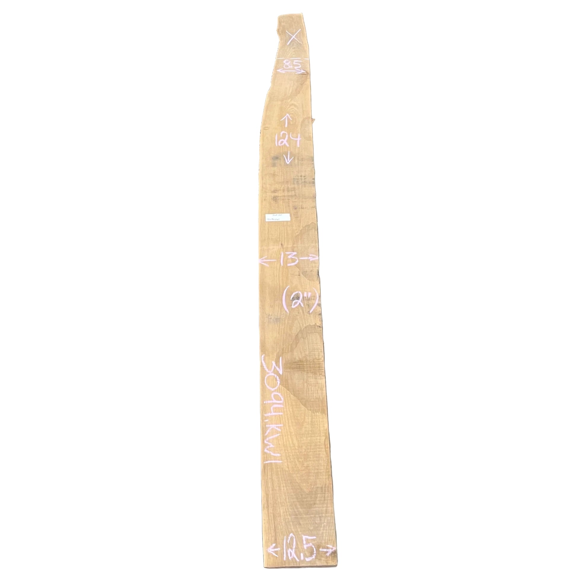 Kiln dried Red Oak live edge wood slab measuring 2X8.5-13-12.5X124.